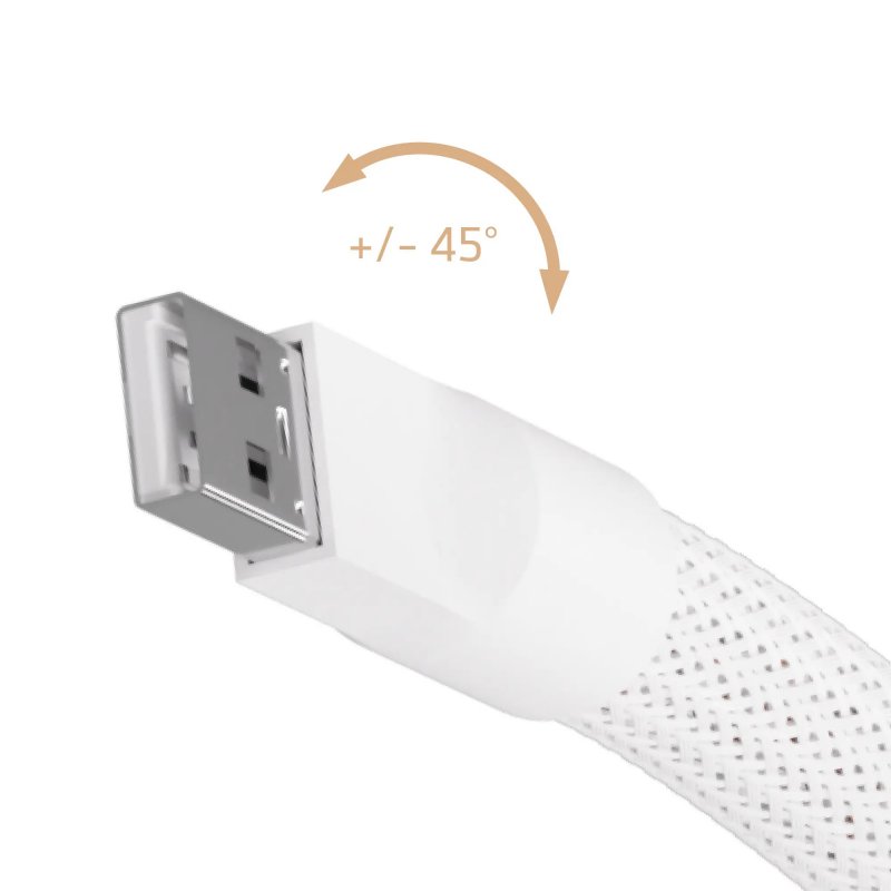 USB 180° 可旋轉接頭(±45°),安裝更自由,避免線材扭轉與插座受力